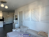 Un séjour avec coin cuisine aménagé de type contemporain, une chambre, une salle d'eau, WC indépendant. Il bénéficie d'une belle terrasse qui offre une jolie vue dégagée.
